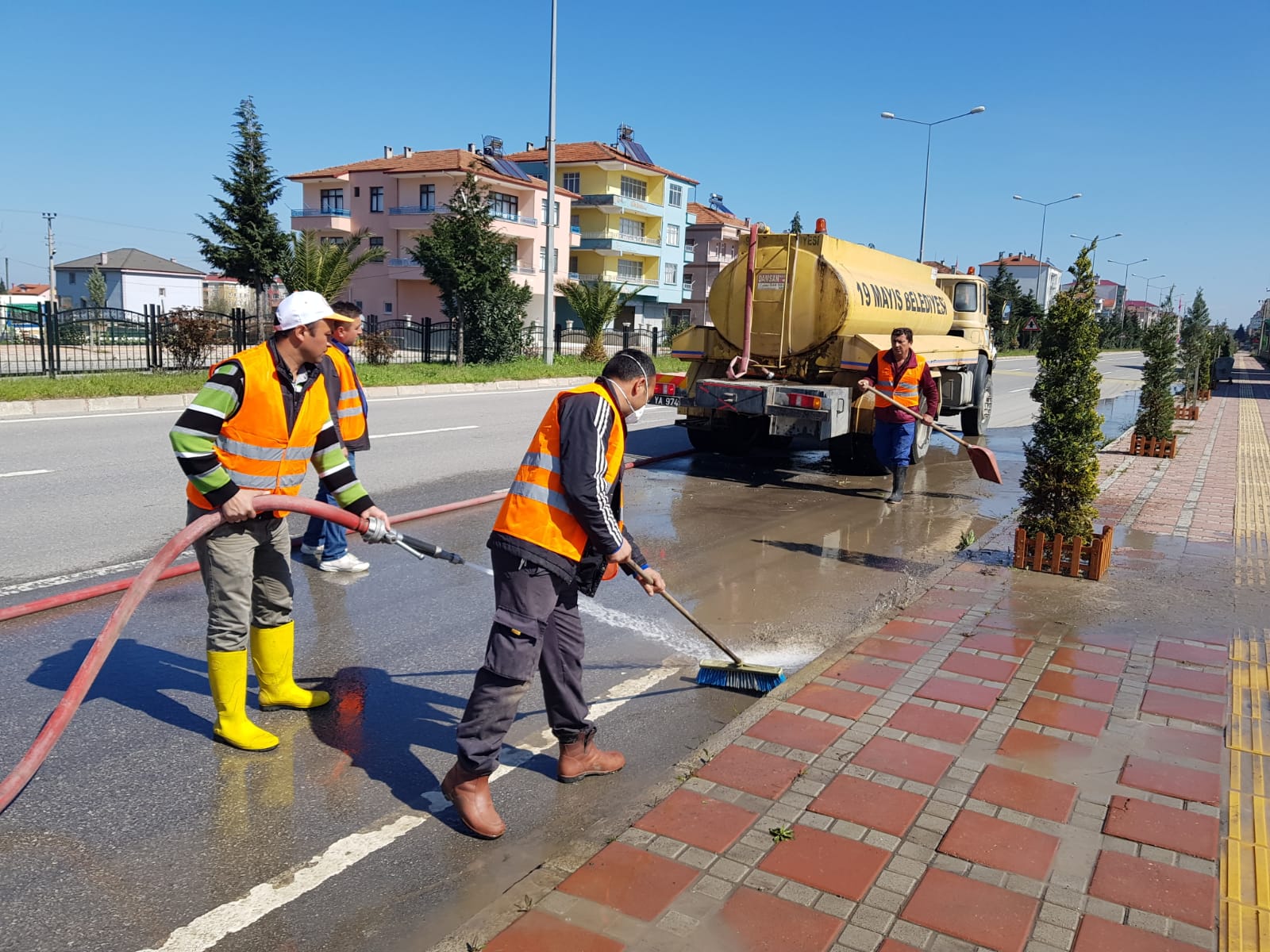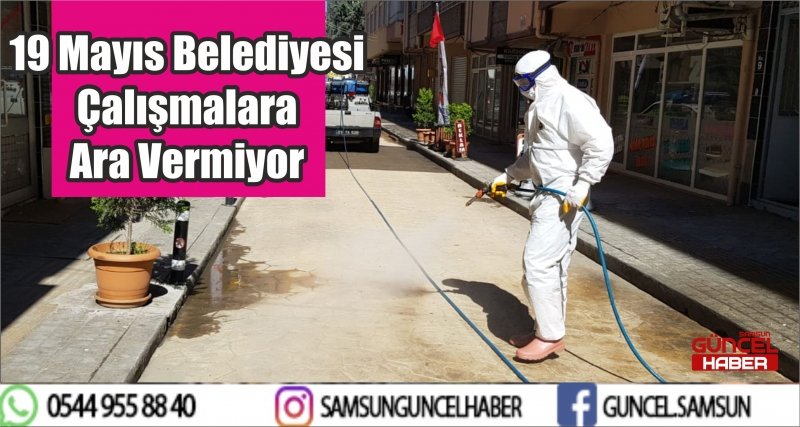 İlçede her yıl düzenli bir şekilde sürdürdüğü ilaçlama ve dezenfekte çalışmalarını, korona virüs tedbirleri kapsamında hızlandıran ve Samsun ili genelinde çalışmalara başlayan ilk ekip olan 19 Mayıs Belediyesi, 26 Şubat tarihinden itibaren ilçe genelindeki çalışmalarını hızlandırarak devam etmiş ve halen de etkin bir biçimde kesintisiz olarak günde en az 12 saat çalışmalara devam etmektedir.