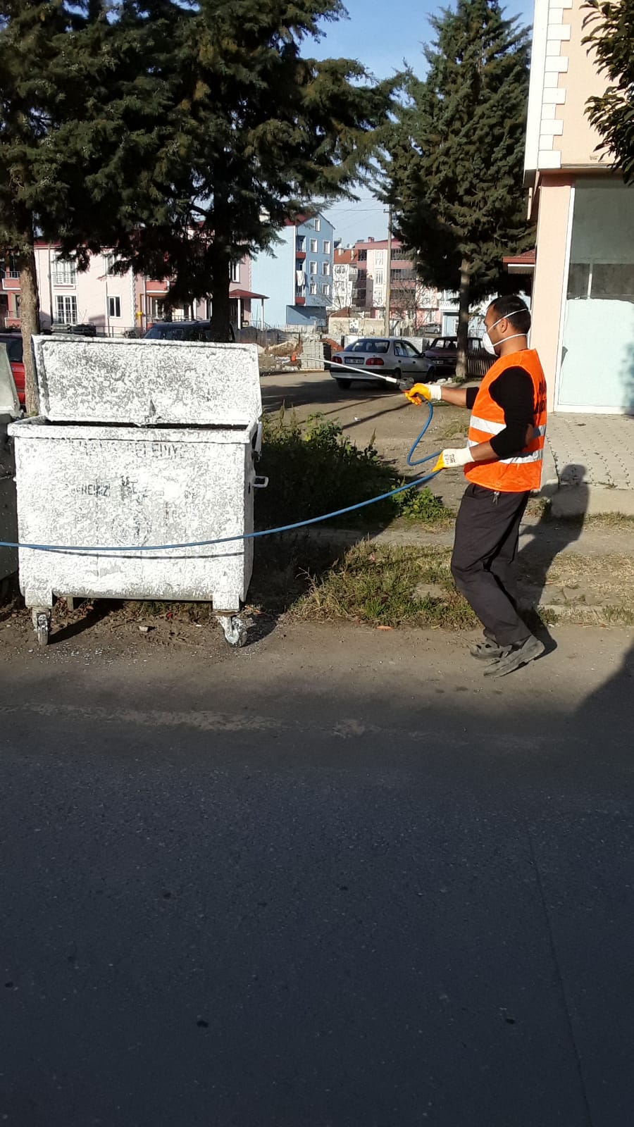 Ayrıca ilçe merkezindeki ve camilerdeki tuvaletlerde dezenfekte edilerek, ilaçlanıyor.