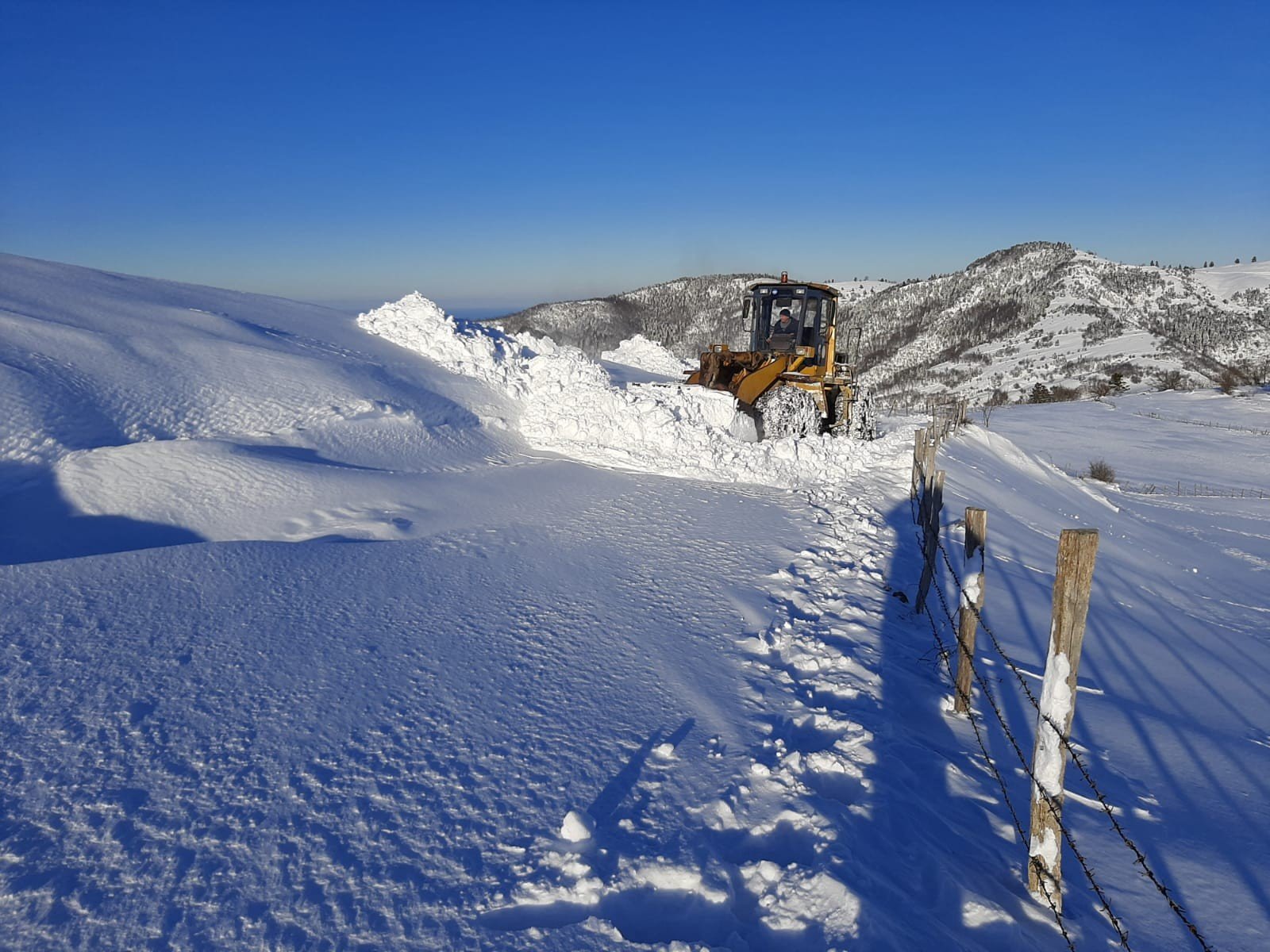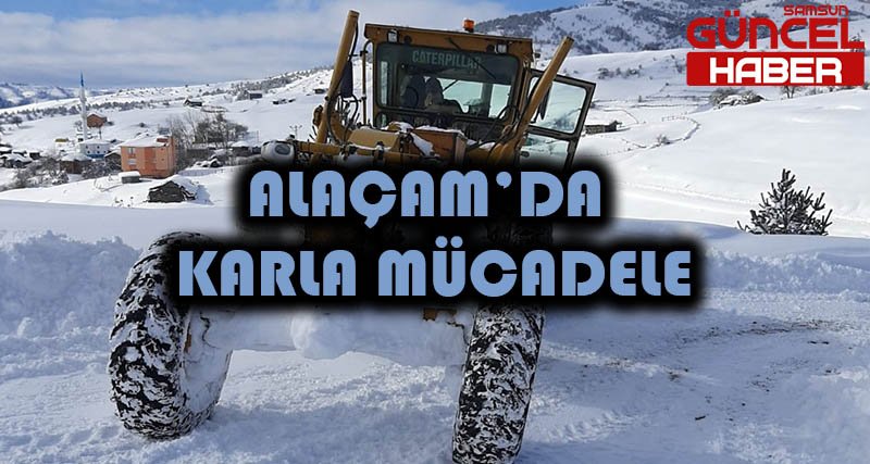Samsun'un Alaçam ilçesinde yüksek kesimlerde karla mücadele çalışması devam ediyor.