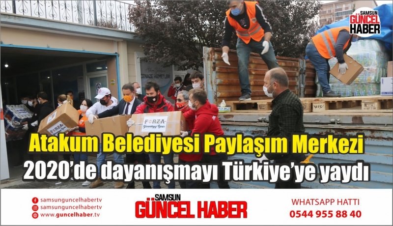 Atakum Belediyesi Paylaşım Merkezi, 2020’de Türkiye’nin farklı kentlerinde yaşanan afetlerin ardından zor durumda kalan yurttaşlara da yardım eli uzattı. Atakum Belediyesi’nin afetzedeler için düzenlediği yardım kampanyalarına yapılan dayanışma bağışları, Paylaşım Merkezi ekiplerince afet bölgelerine ulaştırıldı. Ocak ayında meydana gelen ve 41 yurttaşın yaşamını yitirdiği 6.5 büyüklüğündeki Elazığ depreminin ardından afet bölgesine 600 koli ısıtıcı, giyim ve gıda ürünleri taşıyan yardım TIR’ı gönderildi. Temmuz ayında Artvin Yusufeli Dokumacılar köyünde yaşanan ve çok sayıda yurttaşın evsiz kalmasına sebep olan yangın sonrasında kıyafet, yorgan, nevresim ve battaniye içeren yardım paketleri, Atakum Belediyesi Paylaşım Merkezi ekiplerince Dokumacılar’a ulaştırıldı. Yaklaşık 140 parça battaniye, yorgan, yastık ve nevresimden oluşan ev eşyalarının yanı sıra 107 koli kadın, erkek, genç, çocuk kıyafeti; atkı, bere, eşofman ve çanta yangın mağdurlarına teslim edildi. Ağustos ayında Giresun’da yaşanan ve 10 kişinin yaşamını yitirmesine sebep olan sel felaketinde de Atakum Belediyesi afetzedeleri yalnız bırakmadı. Bölgedeki acil ihtiyaçlara yanıt vermek üzere 10 ton içme suyu Giresun’un Doğankent ilçesine gönderildi. Ekim ayında Ege Denizi’nde meydana gelen ve 117 yurttaşın yaşamını yitirmesine sebep olan 6.9 büyüklüğündeki depremin ardından Atakum Belediyesi Paylaşım Merkezi, İzmir’e iki yardım TIR’ı gönderdi. 400 koli gıda ürünü, 500 koli kıyafet, 10 palet su, 100 paket bebek bezi, bin 132 adet bebek mamasından oluşan yardım malzemeleri İzmirli depremzedelere ulaştırıldı.