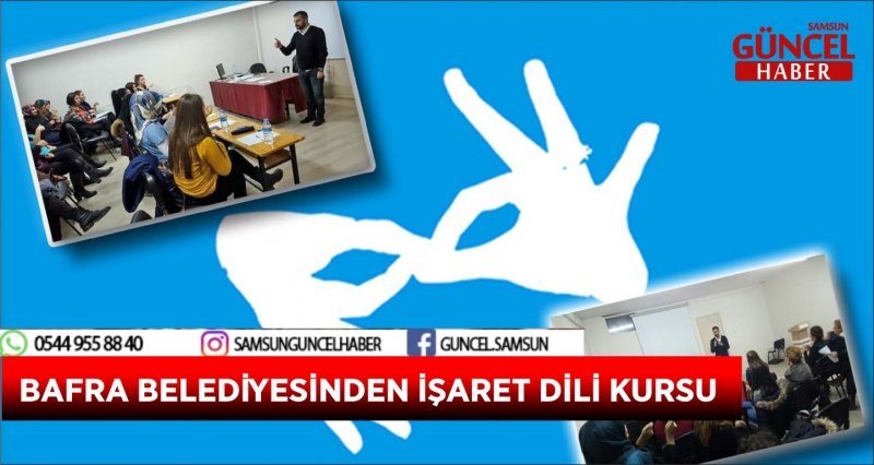 Uzman İşaret Dili Eğitmeni Mustafa Yasir Aksoy tarafından verilecek kurs, hafta içi Pazartesi, Çarşamba, Cuma 18.00-20.30 saatleri arası Bafra Belediyesi Alparslan Türkeş Parkı Sosyal Tesisleri’nde verilecek. 04 Kasım’da başlayıp 13 Ocak 2020 tarihine kadar devam edecek kurs için müracaatlar belediyemiz Basın Halkla İlişkiler Birim Müdürlüğümüzde alınmaya devam ediyor.