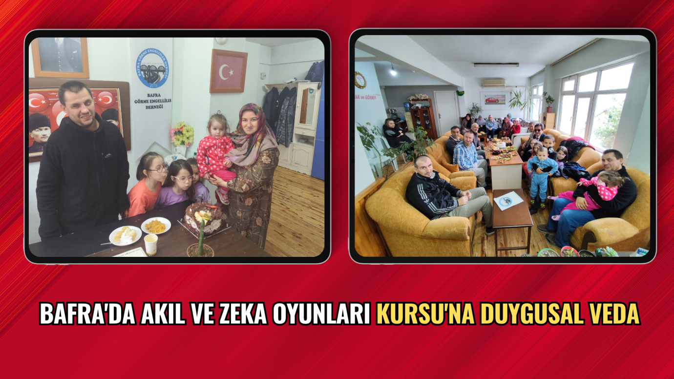 Samsun’un Bafra ilçesinde, Bafra Görme Engelliler Derneği bünyesinde düzenlenen Akıl ve Zeka Oyunları Kursu, gerçekleştirilen yemekli ve eğlenceli veda etkinliğiyle sona erdi. Kursiyerler ve dernek üyelerinin katıldığı programda sohbetler edilip pasta kesildi.