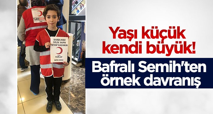 Bafra'da Semih Sönmez adlı ortaokul öğrencisi, kendisinin ve arkadaşlarının kullanmadıkları eşyalarını ilçedeki Çelik Park AVM'de kurduğu küçük standta satıp geliri Türk Kızılay'ına bağışlıyordu.