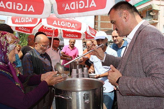 ”Muharrem ayının büyük sevinçleri ve büyük hüzünleri bir arada bulundurduğuna işaret eden Başkan Akgül “ Efendimiz (S.A.V)’in gözbebeği Hazret-i Hüseyin ve arkadaşlarını anmak, çektikleri acıların hatırlanması ve şahadetlerinin asla unutulmaması anlamı taşıyan aşure, aynı zamanda dayanışma ve paylaşma günleridir. Bu topraklar ve bu topraklarda yaşayan her bir insan için en önemli günlerdendir, aşure günleri. Hem dini hem kültürel hem de sosyal boyutu vardır. Bu mübarek günlerde, bizler, dinimiz açısından aşure gününde meydana gelen olayları tekrar tekrar hatırlar, oruç tutar, 40 farklı ürünü bir araya getirerek aşure yapıp akraba ve komşularımıza dağıtır, tüm toplum olarak bir manevi hava yaşarız. İşte burada bu aşureleri dağıtarak, hem tarihte yaşanan hadiseleri unutturmamış, hem bir Anadolu geleneğini yaşatmış, hem de halkımızla kucaklaşmış oluyoruz” dedi.