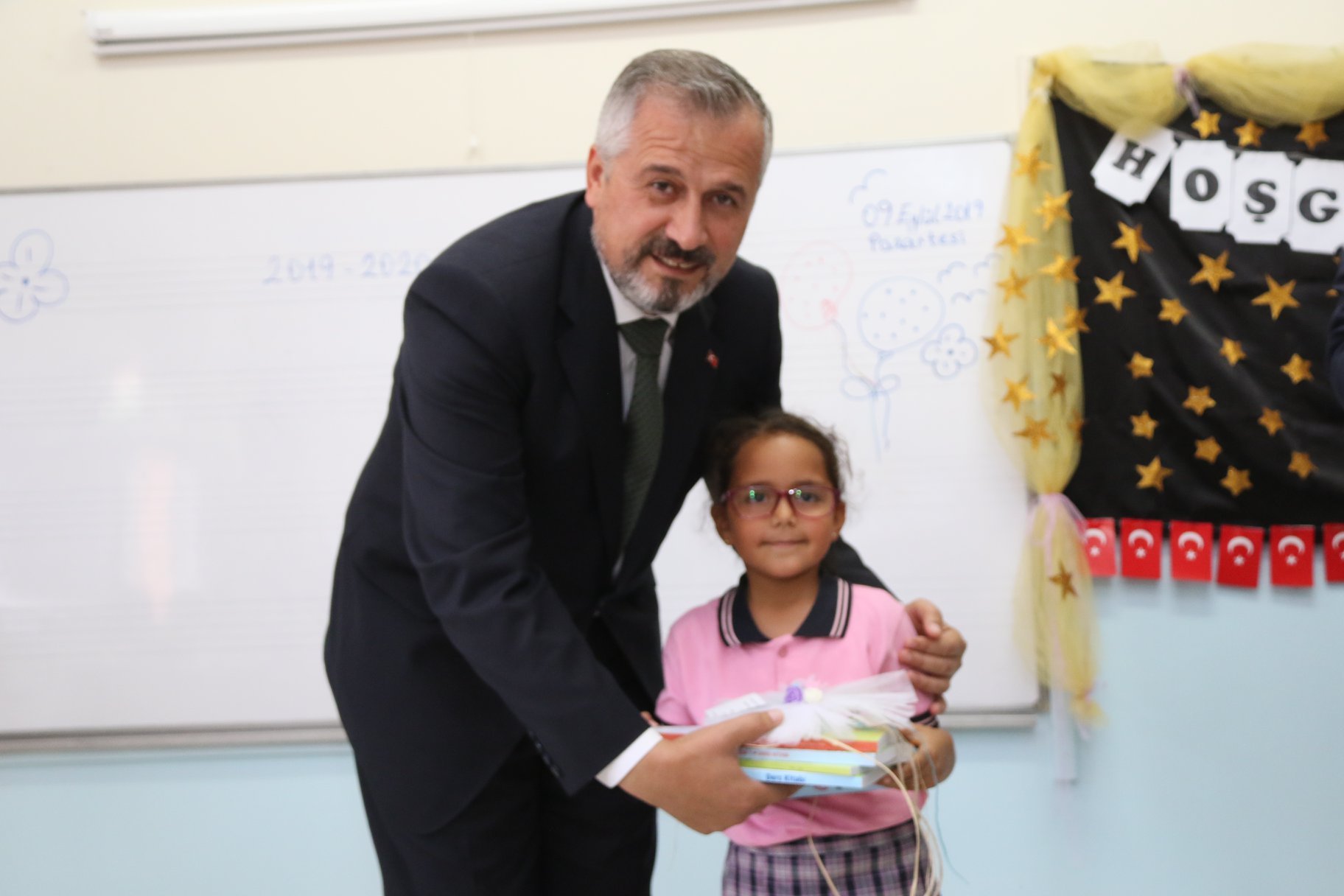 Okul Müdürü Arif Şahin ve müdür yardımcıları ekşiliğinde okula yeni başlayan öğrenciler ile sohbet edip heyecanlarını paylaşan Bafra Belediye Başkanı Hamit Kılıç; “2019/2020 eğitim-öğretim yılının ülkemize hayırlı olmasını, evlatlarımıza başarı ve mutluluklar getirmesini temenni ediyorum” dedi.