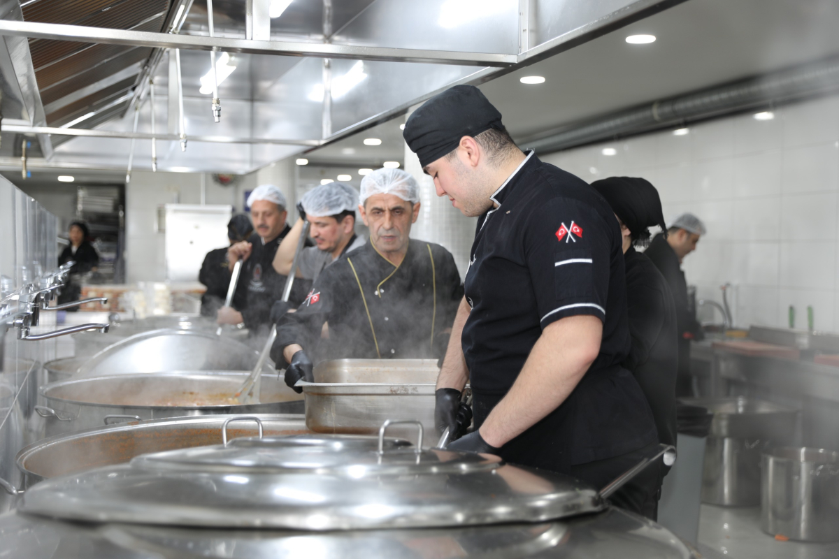 Gıda İşleme Merkezleri’nde hazırlanıyor. Maharetli ustalar her gün çorba, ana yemek, pilav,