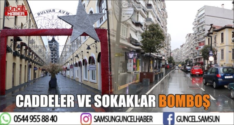 Samsun'da özellikle vatandaşların yoğun olarak kullandığı İstiklal ve Mecidiye Caddelerinin saat 12.00 sıralarında boş olduğu gözlendi. Ana arterlerin bomboş olması insanların hem virüs tehlikesi hem de elverişsiz havadan dolayı dışarı çıkmamayı tercih ettiğini gösterdi. Bulvar AVM etrafında bulunan alanların da seyrek olduğu gözlerden kaçmadı. Sokağa çıkan bazı insanlar virüse karşı maske takarak önlem aldı.
