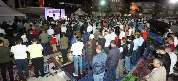 Kadir gecesinde binlerce kişi Canik Belediyesi’nin Adnan Menderes Demokrasi Meydanında düzenlediği programda bir araya gelerek Ay Yıldızın gölgesi altında buluştu.