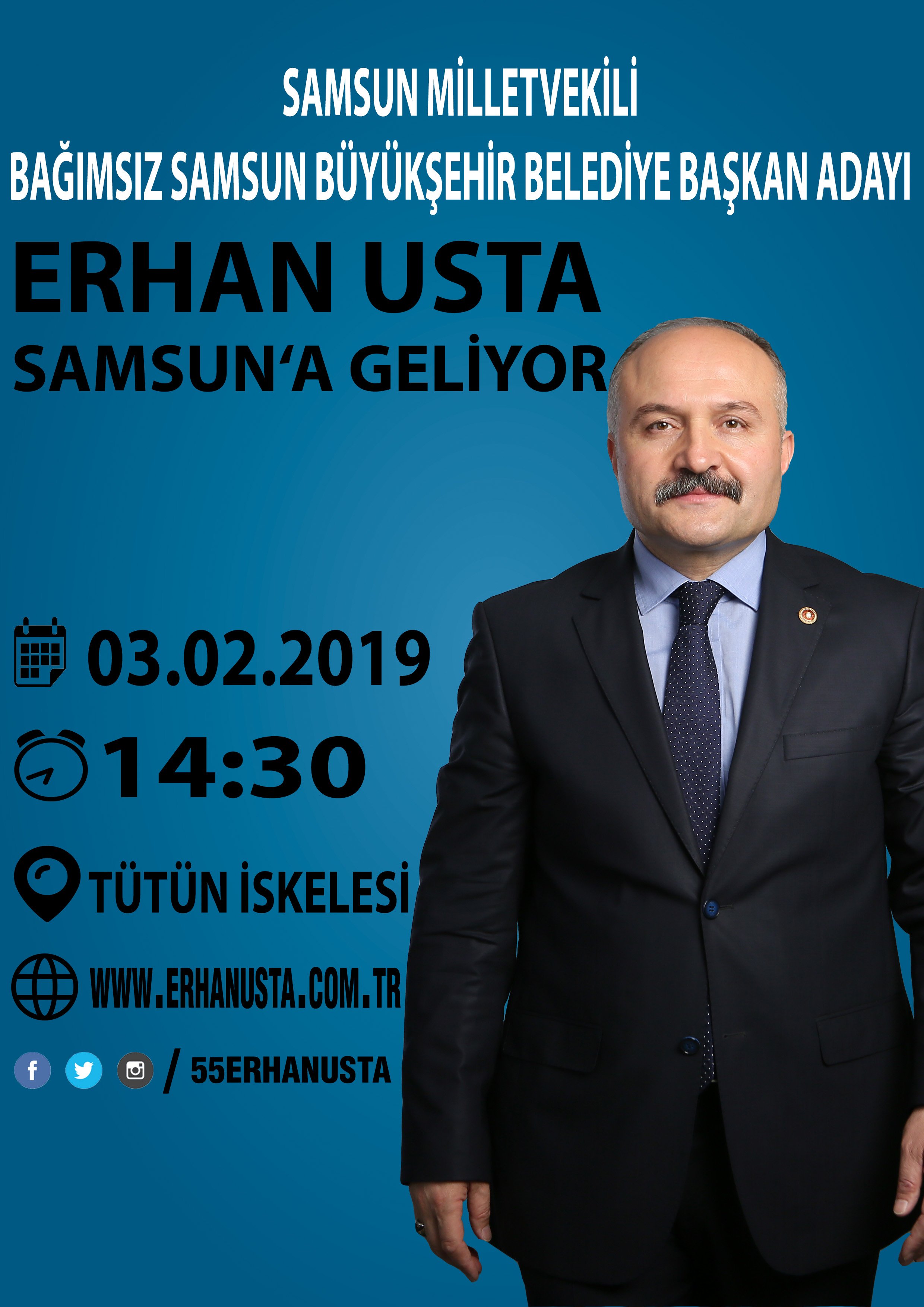 ERHAN USTA SAMSUN'DA HALK İLE BULUŞACAK! Bağımsız Samsun Milletvekili Erhan Usta, Samsun Büyükşehir Belediye Başkanlığına bağımsız olarak aday olduğunu açıkladı. 31-01-2019 17:50 Güncelleme : 31-01-2019 21:59 Erhan Usta Pazar Günü Saat 14:30'da Tütün iskelesinde basın mensupları ve Samsun halkı ile buluşacak. #ERHAN USTA #ERHAN USTA SAMSUN #ERHAN USTA BAĞIMSIZ BELEDİYE BAŞKAN ADAYI #SAMSUN BÜYÜKŞEHİR BELEDİYESİ #SAMSUN ADAYLARI #SAMSUN #SAMSUN MHP #SAMSUN AK PARTİ #SAMSUN İYİ PARTİ #ERHAN USTA SAMSUN MİLLETVEKİLİ #BAĞPIMSIZ YORUMLAR Website Disqus Adınız * E-Posta Adresiniz * Yorumunuz * SİYASET Başkan Kul: "Terme’yi uluslararası arenada temsil edeceğiz" Özdağ yeniden adaylık sinyali verdi: "Gönlümden geçiyor" Çan: "Yatırımlara destek verdik" Muharrem İnce CHP'ye döndü Murat Çan'dan Samsun’da 2. Yıl Toplantısı Çok Okunanlar 1 Samsun merkezli 3 ilde suç örgütü operasyonu: 17 kişi tutuklandı 2 Samsun’da iş yerinde bıçaklı kavga: 1 kişi hayatını kaybetti 3 Trafik kazası sonrası engelli kalan öğretmenden hayata tutunma hikâyesi 4 Bafra’daki cinayette azmettirici iddiası: 2 kardeş gözaltına alındı 5 Bafra’da iki grup arasında kavga: 2 kişi bıçaklandı