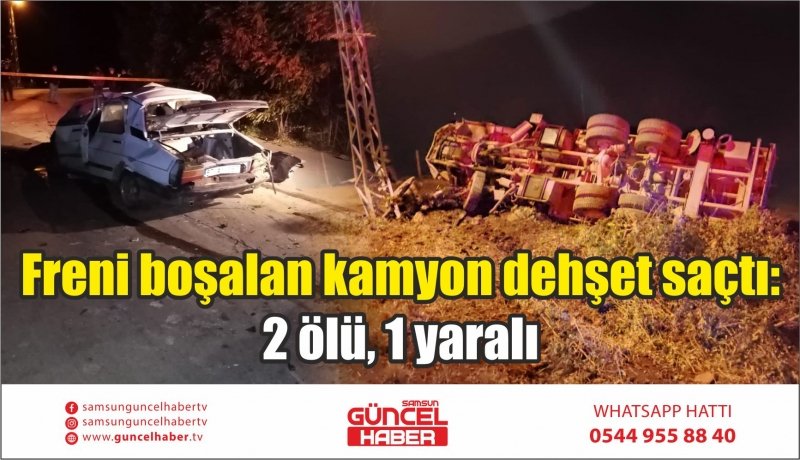 Kaza, saat 19.00'da Çetirlipinar Mahallesi'nde meydana geldi. Edinilen bilgiye göre, Z.Ç'nin kullandığı 55 K 5087 plakalı kamyonun rampa aşağı inerken freni boşaldı. Freni boşalan kamyon, karşı yönden gelen Serkan Çay'ın kullandığı 55 PF 442 plakalı otomobilin üzerinden geçerek yine karşı yönden gelen Z.G'nin kullandığı 57 AY 367 otomobile çarpıp devrildi. Kazada sürücü Serkan Çay ve otomobilde bulunan annesi Fatma Çay olay yerinde hayatını kaybetti. Diğer otomobil sürücüsü ise ağır yaralandı. Ağır yaralanan sürücü olay yerine gelen sağlık ekiplerince Ondokuz Mayıs Üniversitesi (OMÜ) Tıp Fakültesi Hastanesi'ne sevk edildi. Kazada hafif yaralanan kamyon sürücüsü jandarma tarafından gözaltına alındı.