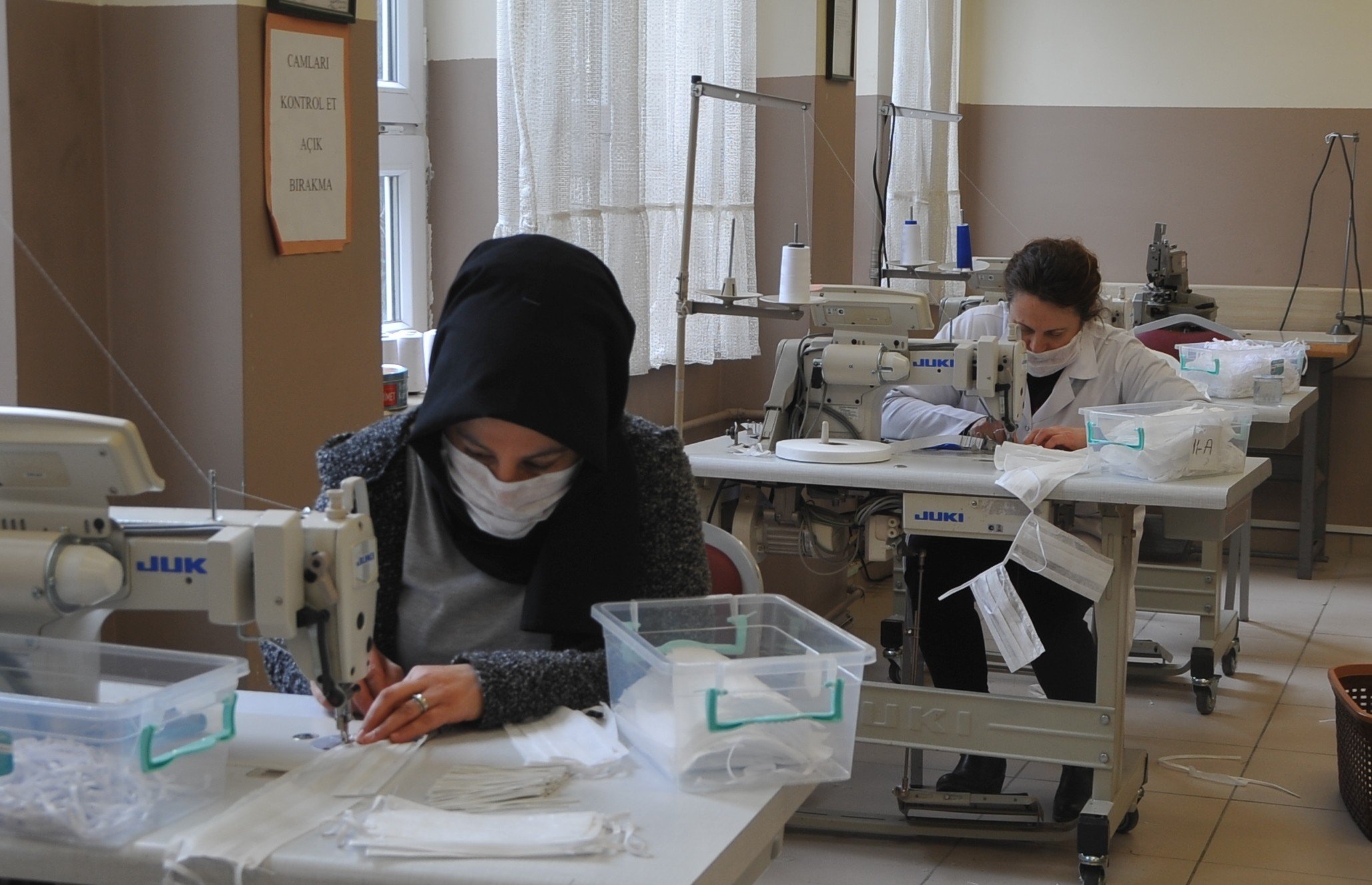 Müdür Yardımcısı Gamze Nur Tuncer, “Biz elimizden geldiğince ülkemize yaşadığı bu zor dönemde yardımcı olmaya çalışıyoruz. Arkadaşlarımız gönüllü olarak atölyelerde çalışıyorlar. Maske üretiyoruz, yaşadığımız süreç ortada. Herkesin çorbada tuzu bulunması gerektiğini düşündük ve böyle bir çalışmaya girdik. Umarım en kısa sürede de bu sıkıntılı günleri atlatmış oluruz” diye konuştu.