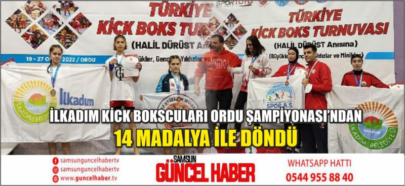 19 Ocak Çarşamba günü başlayan ve 81 ilden 4 bin 300 sporcunun katıldığı ve idareci, antrenör ve hakemler ile birlikte 6 bin kişinin katıldığı Kick- Boks turnuvası tamamlandı. Turnuvaya katılım sağlayan İlkadım Belediyesi sporcularında Devrim Aydın ve Atanur Yayla rakiplerini eleyerek altın madalya almaya hak kazanarak Samsun’un gururu oldular.Altınordu ilçesindeki Başpehlivan Recep Kara Spor Salonu'nda oynanan maçlarda dereceye giren sporculara madalyaları Vali Tuncay Sonel'in yanı sıra federasyon yetkilileri ile Gençlik ve Spor İl Müdürü Mustafa Genç tarafından verildi.