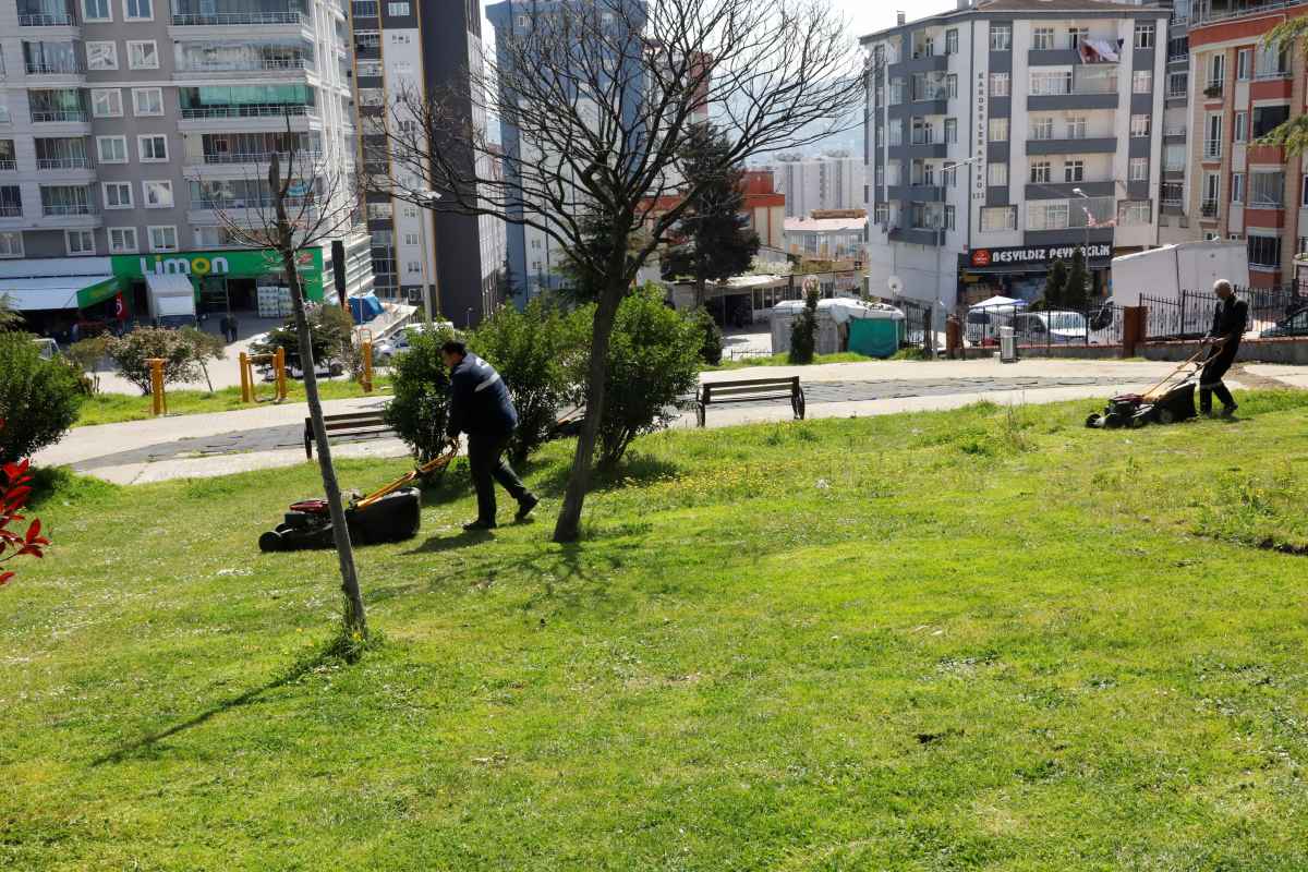 Park ve bahçelerdeki ot biçme çalışmalarının yanı sıra bakım ve temizlik faaliyetlerinin yaz