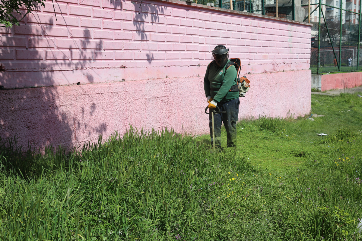 oyun alanları, yürüyüş yolları ve yeşil alanlarda uzayan otların biçilmesi çalışmalarına devam