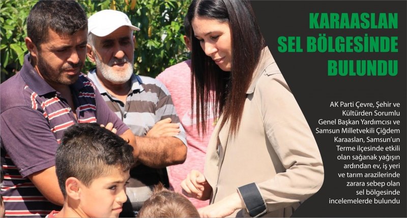AK Parti Çevre, Şehir ve Kültürden Sorumlu Genel Başkan Yardımcısı ve Samsun Milletvekili Çiğdem Karaaslan, Samsun’un Terme ilçesinde etkili olan sağanak yağışın ardından ev, iş yeri ve tarım arazilerinde zarara sebep olan sel bölgesinde incelemelerde bulundu.