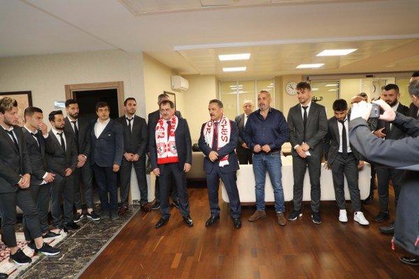 Kırmızı-Beyazlı Play-Off yolunda başarı dilen Samsun Valisi Kaymak ise, “Şehir sizlerden çok şey bekliyor. Samsun’un futbol altyapısı çok güçlü. Şehirdeki bütün kurumlar, kişiler, taraftar 1’inci Lige odaklandı. Haliyle sizin üzerinizde sorumluluk fazla. Oynadığınız pozisyonlardaki görevlerinizi en iyi şekilde yapmanız halinde bu başarı gelecektir. Dualarımız sizlerle. Şehir Play-Off’lara kitlendi. Bu şehir size güveniyor. Play-Off’da kamu kurum ve kuruluşlar, belediyelerimiz, şehir, taraftarlarımız sizin arkanızda. Kendinize güvenin, bu işi başarırsınız. İnananlar başarır” ifadelerinde bulundu.