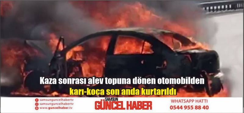 Samsun'da kaza sonrası alev topuna dönen otomobilden emekli öğretmen olan sürücü ile eşi vatandaşlar tarafından son anda kurtarıldı. Yaralanan karı-koca hastaneye kaldırıldı.