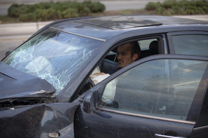 Olay yerine gelen 112 Acil Servis ekiplerine sağlık durumunun iyi olduğunu belirten Levent K, çevredeki vatandaşların şaşkın bakışları arasında yola savrulan araç parçalarını topladı.