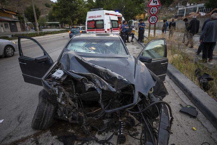 Yön levhaları ve iki ağaca çarptıktan sonra tekeri kopan otomobilin motoru da 50 metre ileriye fırladı.