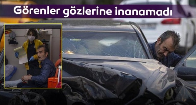 Kaza sonrası araç sürücüsü Levent K, emniyet kemeri sayesinde hurdaya dönen otomobilden yara almadan çıktı.