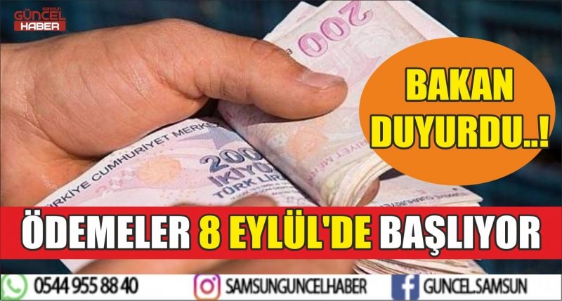 Ödemelerin 8 Eylül’den itibaren hesaplara yatırılmaya başlayacağını açıklayan Bakan Selçuk, ödemelerin banka hesapları üzerinden yapılacağını anımsattı. Sistemde IBAN bilgisi eksik veya hatalı olanların ödemeleri ise PTT aracılığıyla yapılacak. Bakan Selçuk, “Ücretsiz izne ayrılan işçilerin Nakdi Ücret Desteği ödemeleri T.C. kimlik numaralarının son hanesi 0-2-4 olanlara 8 Eylül’de, 6-8 olanlara 9 Eylül’de yapılacak” ifadelerini kullandı.