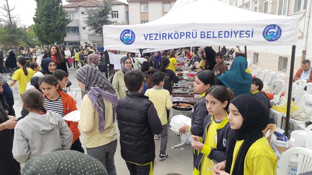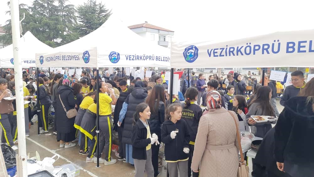 Samsun’un Vezirköprü ilçesinde, Filistin’deki Gazzelilere destek amacıyla Atatürk Ortaokulu öğrencileri tarafından düzenlenen hayır çarşısı büyük ilgi gördü.