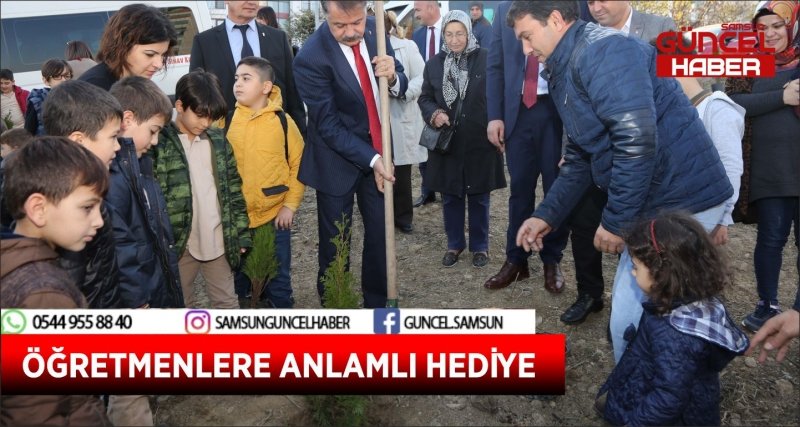 Mimarsinan İlköğretim Okulu öğrencileri, 24 Kasım Öğretmenler Günü kapsamında fidan dikimi gerçekleştirerek öğretmenlerine unutulmaz bir hediye armağan etti. Küçükkolpınar Mahallesi’nde, Atakum Belediyesi’ne ait bulunan park alanında gerçekleşen fidan dikimi etkinliğine, Atakum Belediye Başkanı Av. Cemil Deveci, Mimarsinan İlköğretim Okulu Müdürü Necmettin Gün, okul öğretmenleri, öğrencileri ve veliler katıldı. Başkan Deveci, öğrencilerle ve velileriyle birlikte fidan dikerek öğretmenlerin özel gününü kutladı.