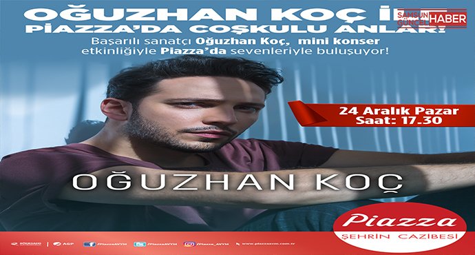 Açıldığı günden bu yana alışverişin yanı sıra birbirinden ünlü isimleri de Karadenizliler ile buluşturan Samsun Piazza Alışveriş ve Yaşam Merkezi, bu kez pop müziğin en sevilen isimlerinden Oğuzhan Koç’u konuk edecek. Söz ve müziği kendisine ait olan “Küsme Aşka” isimli şarkısıyla geçtiğimiz yaza damgasını vuran Oğuzhan Koç, 24 Aralık Pazar günü saat 17.30’da düzenlenecek ücretsiz mini konser etkinliğinde Piazza ziyaretçilerine coşku dolu anlar yaşatacak.