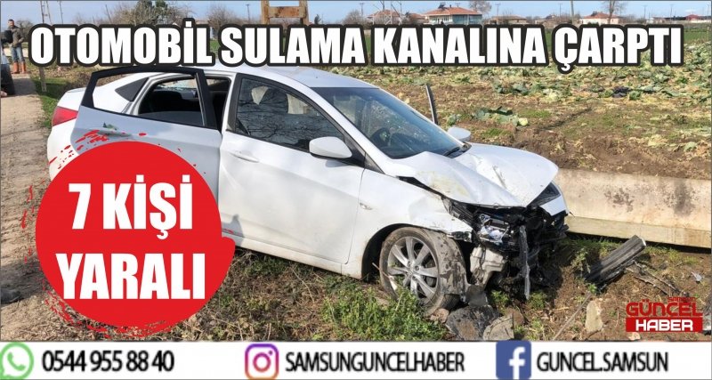 Samsun'un Bafra ilçesinde kontrolden çıkan otomobil su kanalına çarptı, kazada 7 kişi yaralandı.