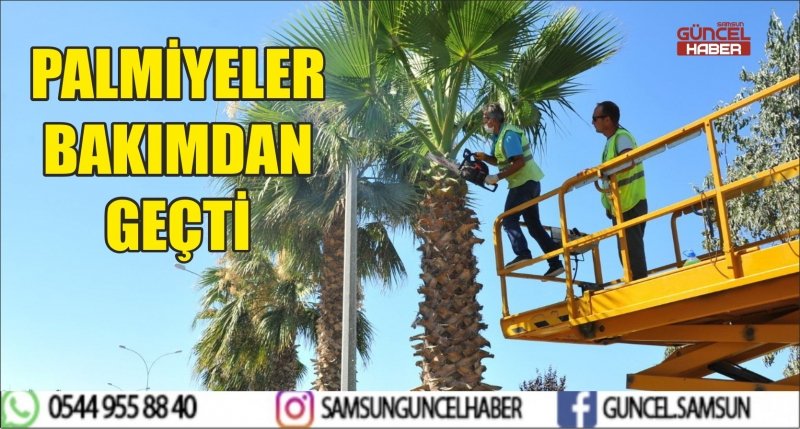 Samsun Büyükşehir Belediyesi ekipleri, Atakum sahilindeki palmiye ağaçlarını bakımdan geçirdi.