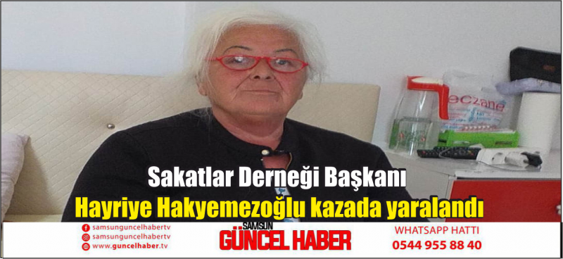 Kaza, Samsun'un Atakum ilçesi Yeni Mahalle Atakent Bulvarı üzerinde meydana geldi. Edinilen bilgiye göre, akülü tekerlekli sandalyesi ile yaya geçidinden yolun karşısına geçmeye çalışan Türkiye Sakatlar Derneği Samsun Şubesi Başkanı Hayriye Hakyemezoğlu'na, Onur Ö. idaresindeki 09 ADC 855 plakalı motosiklet çarptı. Kazada Hayriye Hakyemezoğlu ile motosiklet sürücüsü Onur Ö. yaralandı. Yaralılar, ambulansla özel bir hastaneye kaldırılarak tedavi altına alındı. Kazayla ilgili soruşturma başlatıldı.