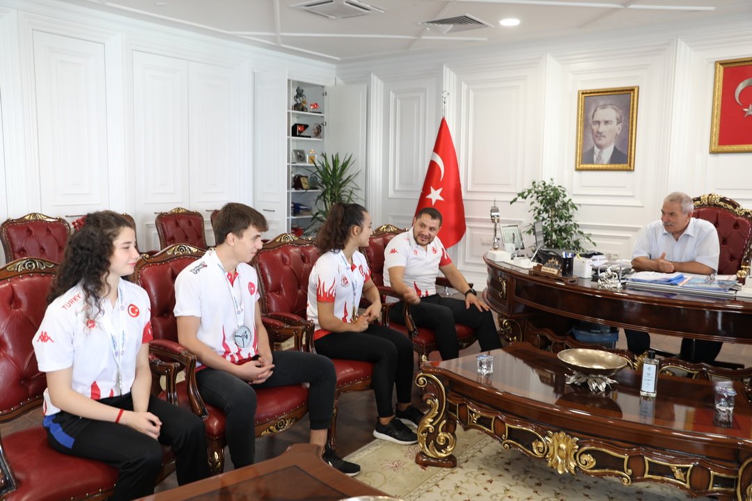 23 Ağustos 1 Eylül 2019 tarihleri arasında düzenlenen 38 ülkeden yaklaşık 2 bin sporcunun katılım sağladığı WAKO Gençler Avrupa Kick Boks Şampiyonası’nda Milli takımımız adına yarışan ve madalya ile dönen İlkadım Belediyesi Kick Boks sporcularından Avrupa Şampiyonu Milli Sporcu Devrim Aydın, (Bayanlar)Avrupa ikincisi Gizem Kocaoğlu,(Erkekler) Avrupa ikincisi Yunus Erçin, Antrenörler Mustafa Şencan,Özgür Arlı ve Spor Müdürü Hakan Karaman İlkadım Belediye Başkanı Necattin Demirtaş'ı makamında ziyaret etti.Samimi sohbet havasında geçen ziyarette takım sporcuları Başkan Demirtaş'a kick boks eldiveni hediye etti.