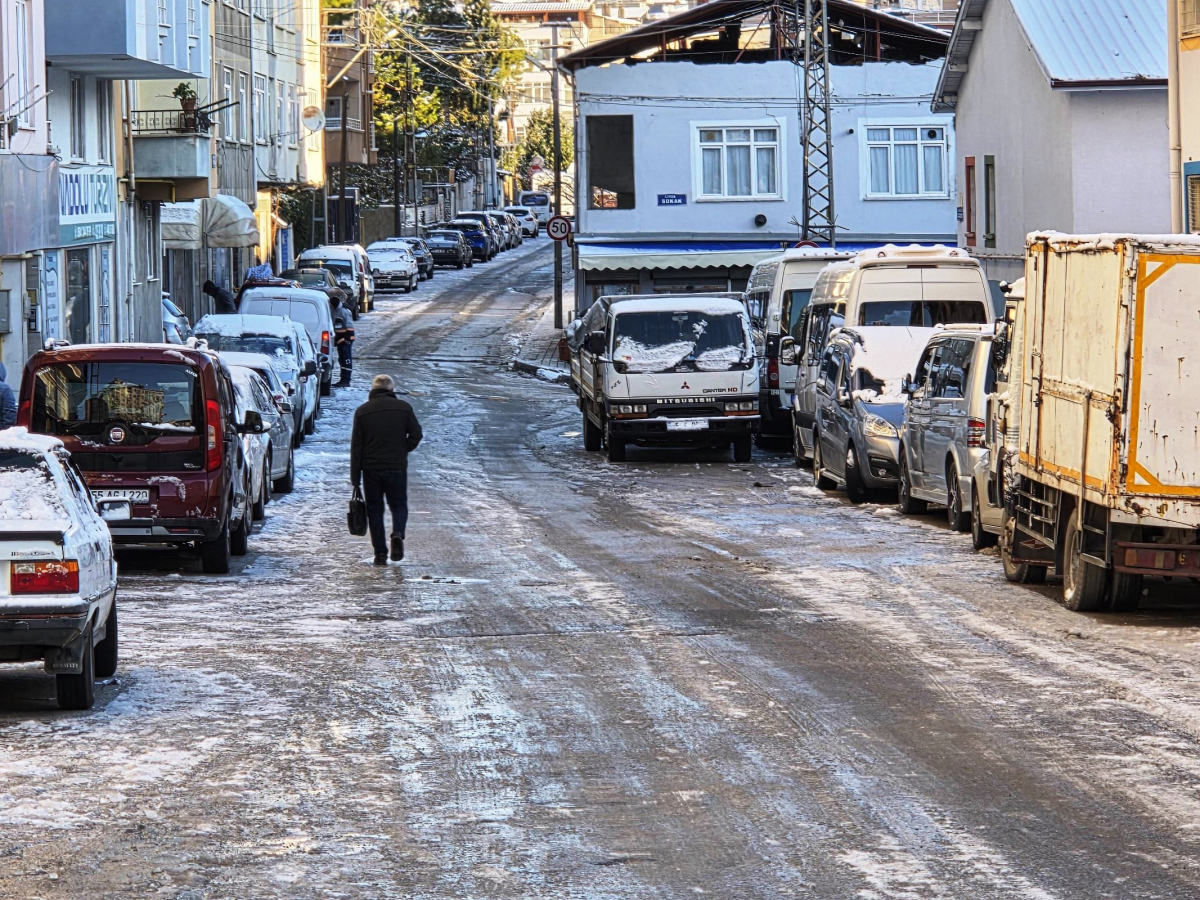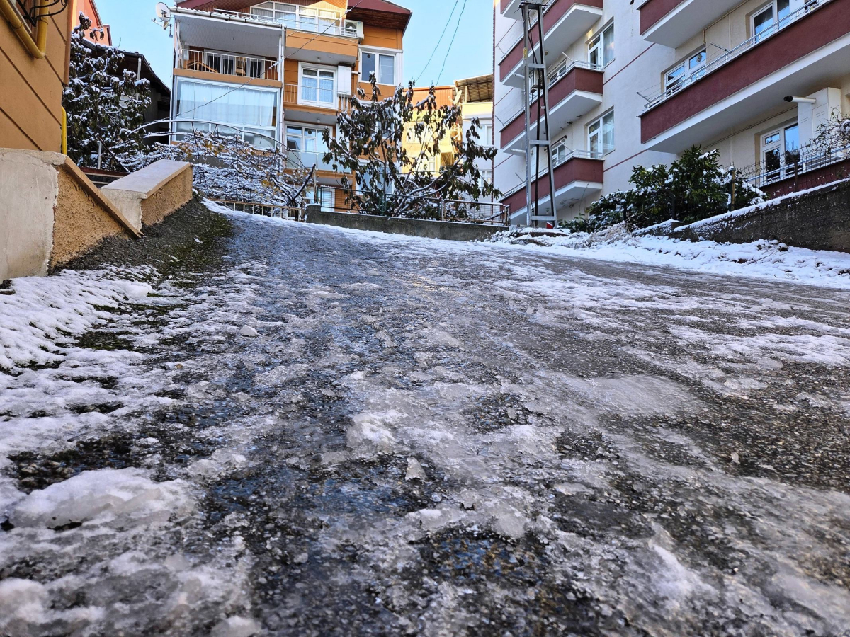 Samsun'da gece etkili olan kar yağışı, sabah saatlerinde yerini yoğun buzlanmaya bıraktı. Vatandaşlar buzlu yollarda yürümekte güçlük çekerken, kent genelinde hayat olumsuz etkilendi.