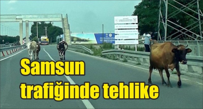 Samsun'da, Karadeniz Sahil Yolu'na çıkan inek sürüsü karayolunda araçların arasında ilerledi. Çarşamba ve Terme ilçe sınırında karayolunda ilerleyen sürü, trafiği tehlikeye düşürürken, bir süre sonra yoldan çıktı ve trafik normale döndü.