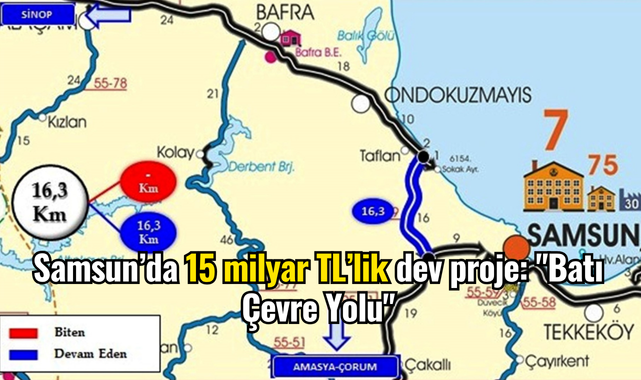 Ulaştırma anlamında Samsun’un şu anki en büyük projesi konumunda bulunan Samsun Batı Çevre Yolu Projesi kapsamında, toplam uzunluğu 16,3 km ve (2x3) şeritli BY-BSK (Bölünmüş Yol - Bitümlü Sıcak Karışım) standardında olan ihale kapsamında; 2x1.755 m uzunluğunda 2 adet çift tüp tünel, 2x1.493 m uzunluğunda 3 adet çift köprü, 2x103 m uzunluğunda 2 adet çift köprülü FSK (Farklı Seviyeli Kavşak) ve 178 m uzunluğunda 4 adet tek köprülü FSK bulunuyor. Bu yıl içerisinde başlanması planlanan Batı Çevre Yolu’nun 2028 yılı sonuna kadar tamamlanması hedefleniyor.