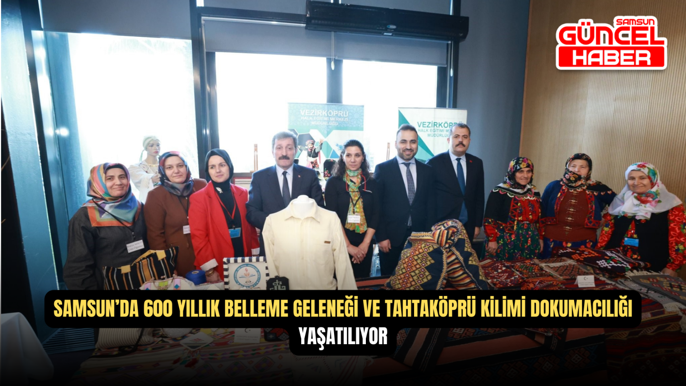 Tarihi köklere dayanan belleme geleneği ile Vezirköprü’nün dokumacılık kültürünün en önemli örneklerinden biri olan Tahtaköprü kiliminin bugüne taşınmasında emek veren Sarıdibekli kadınlar, Halk Eğitim Merkezi öğreticileri ve kursiyerler takdir topluyor.