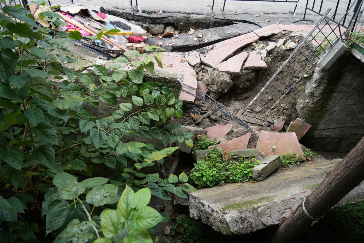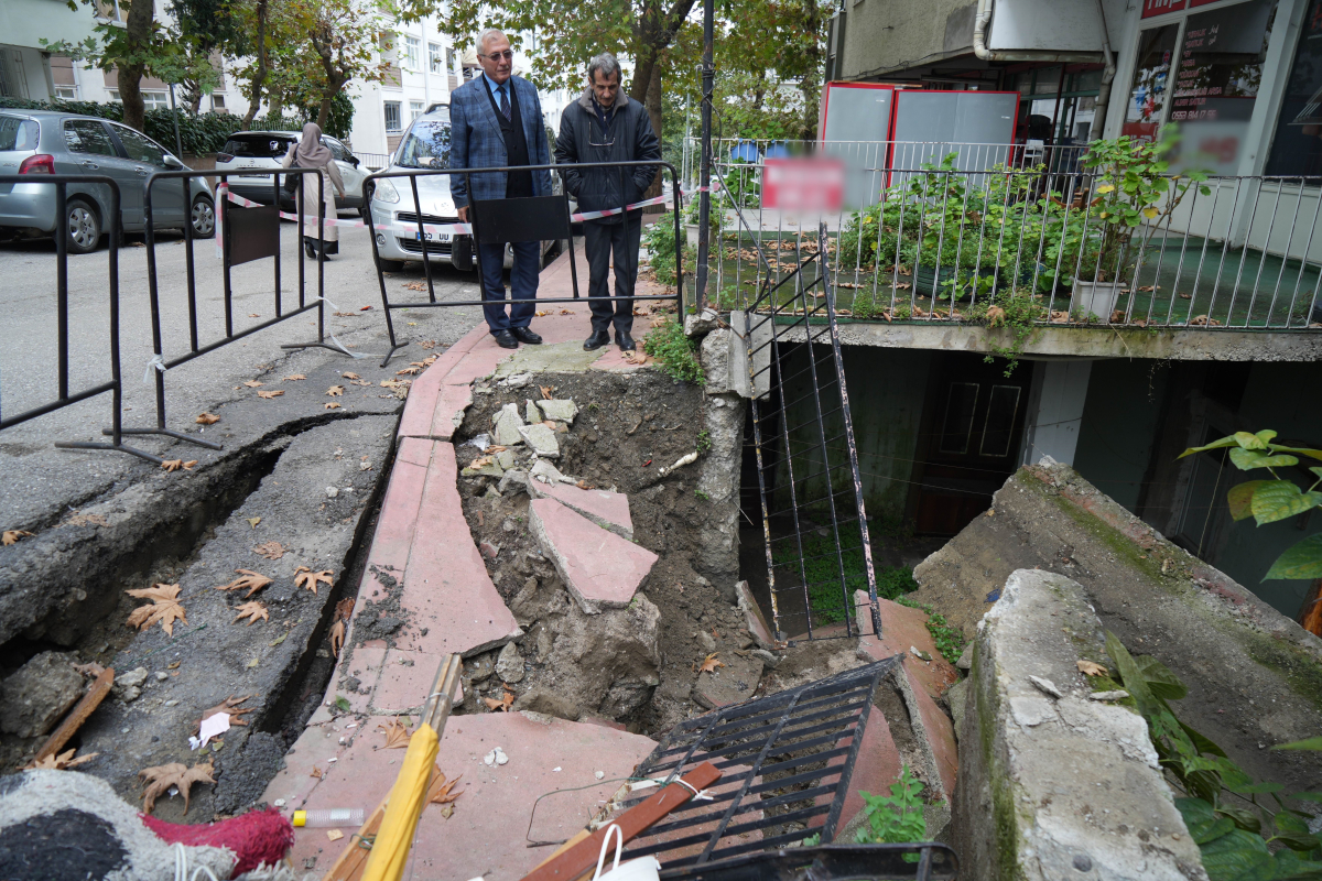 Samsun’un İlkadım ilçesinde sağanak yağış sonrası çöken kaldırım ve istinat duvarı, 4 katlı apartmandaki bodrum katı ile 2 dükkanı kullanılamaz hale getirdi.