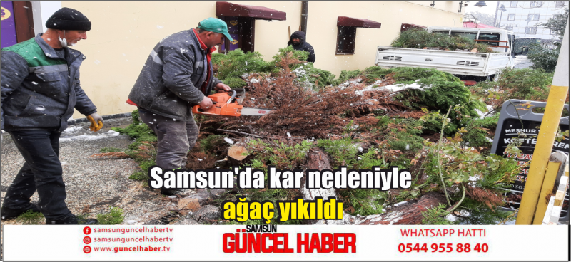 Samsun’da dallarında biriken karın ağırlığına dayanamayan ağaç yıkıldı.