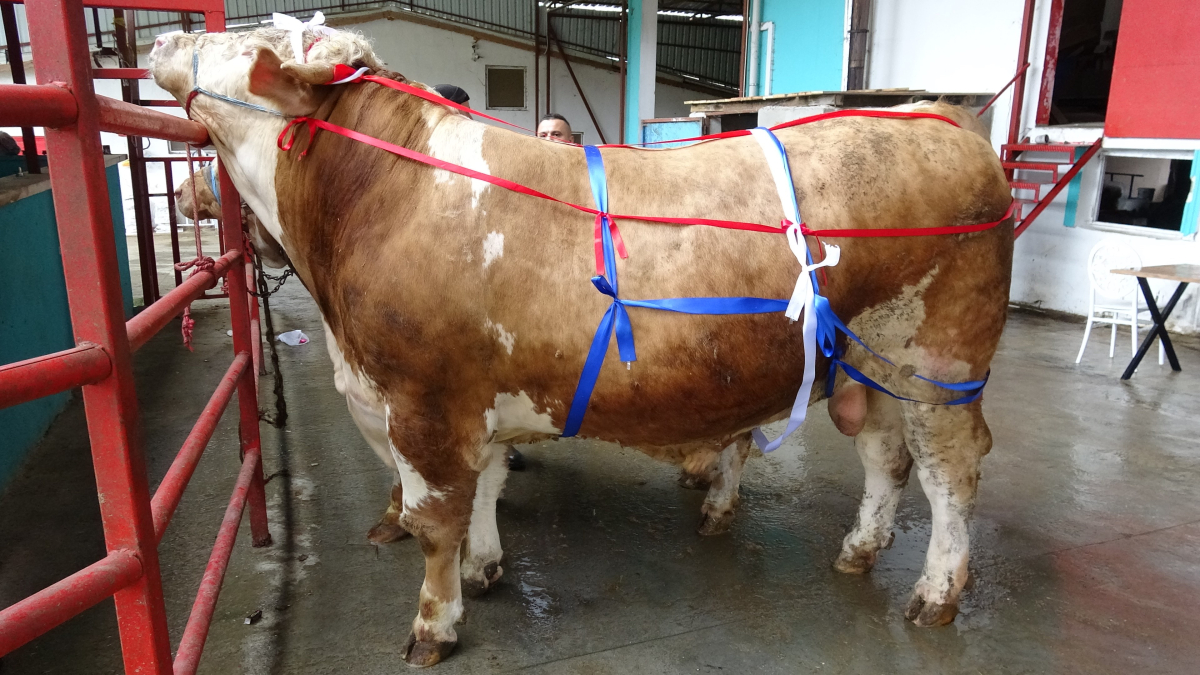 Toplamda 300-400 hayvanı bulunduğunu dile getiren Kocaman, bu iki tosunun cüssesiyle diğerlerinden ayrıldığını söyledi.