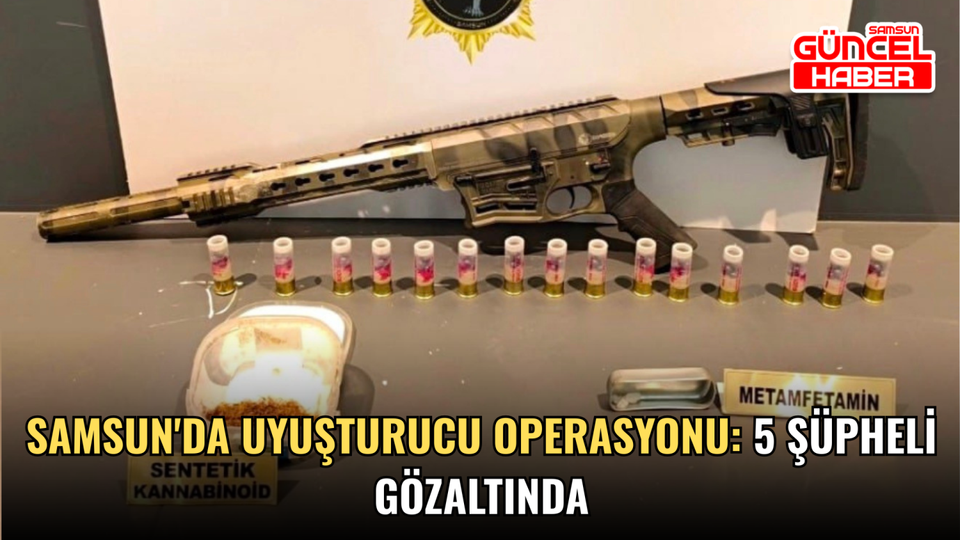 Samsun İl Emniyet Müdürlüğü Narkotik Suçlarla Mücadele Şube Müdürlüğü ekipleri, uyuşturucu madde ticareti yaptıkları tespit edilen şahıslara yönelik çalışma yürüttü. Yapılan operasyon kapsamında 5 şüpheli yakalanarak gözaltına alındı. Şüphelilerin üst, araç ve ikametlerinde yapılan aramalarda 868 kullanımlık peçeteye emdirilmiş sentetik kannabinoid, 87,39 gram metamfetamin, 469 gram sentetik kannabinoid elde edilebilen 4,69 gram fubinica, 200 ml sıvı sentetik kannabinoid, 5 gram eroin, 0,15 gram esrar, 202 adet sentetik ecza, 1 adet hassas terazi, 1 adet ruhsatsız tabanca ve 10 adet fişek, 1 adet av tüfeği ve 15 adet kartuş ile 1 adet kurusıkı tabanca ele geçirildi.