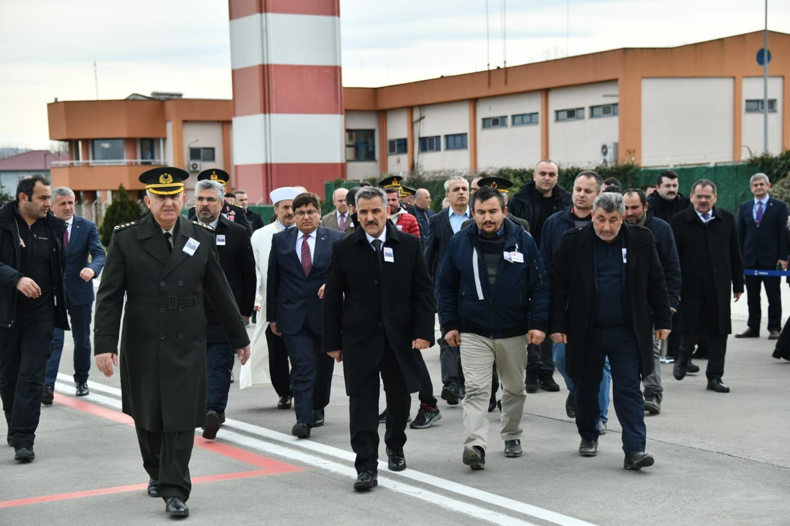 Çarşamba Havalimanı’ndaki askeri törene Samsun Valisi Osman Kaymak, Samsun Garnizon Komutanı Topçu Albay Recep Ali Üstün, Samsun Büyükşehir Belediye Başkanı Mustafa Demir, Samsun Cumhuriyet Başsavcısı Mehmet Sabri Kılıç, şehidin yakınları, askeri ve mülki erkan ile Alaçamlı hemşehrileri katıldı.