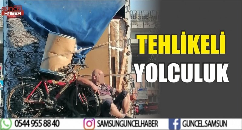 Samsun’da bir vatandaşın eşya dolu kamyonun arkasında akan trafikte keyifle yolculuk etmesi dikkat çekti.