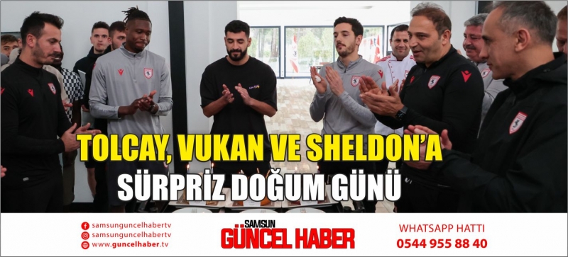 Samsunspor oyuncuları Tolcay Ciğerci, Vukan Savicevic ve Sheldon Bateau’ya antrenman sonrası takım arkadaşları doğum günü sürprizi yaptı.