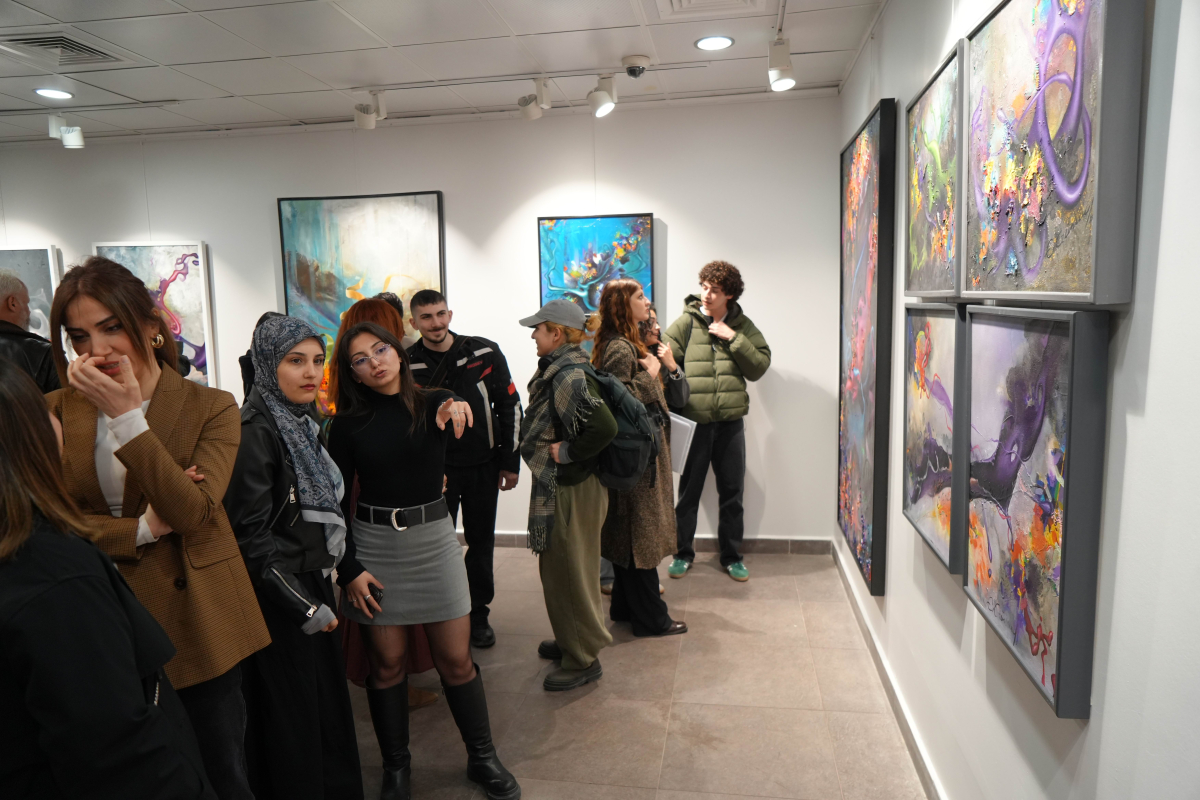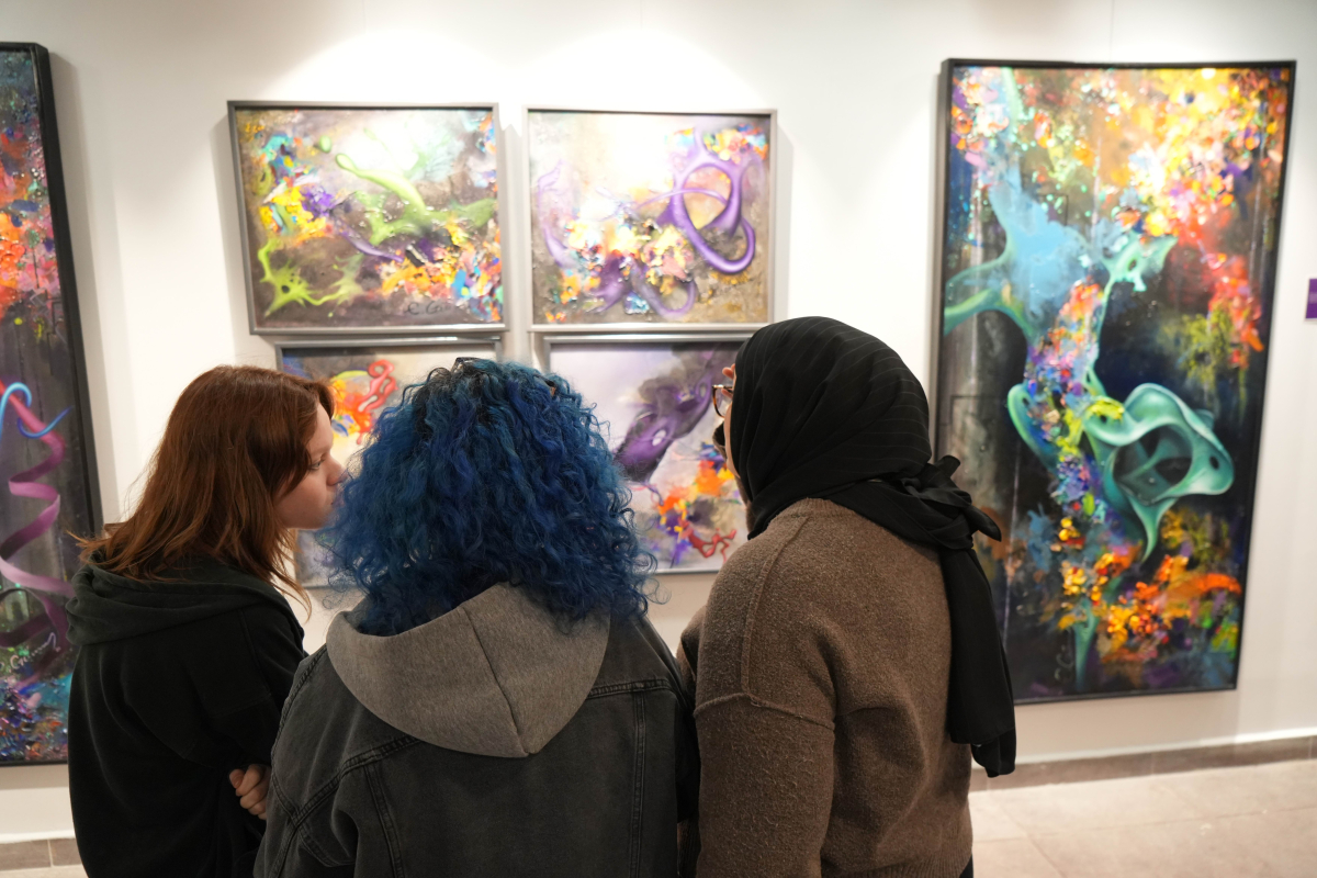 Serginin iki bölümden oluştuğunu ifade eden Güney, ilk bölümde dijitalleşmenin yarattığı “dijitopik” yaşam modelinin eleştirildiğini, ikinci bölümde ise renk ve doku üzerinden alternatif bir gelecek tasviri sunduğunu dile getirdi.