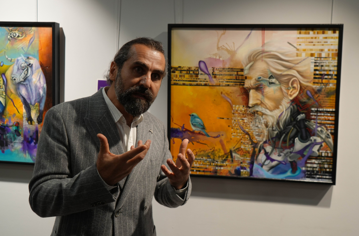 Toplam 29 eserin yer aldığı sergide, kontrolsüz dijitalleşme ve popüler kültürün insan kimliğini nasıl etkilediği sorgulanıyor. Sanatçı Engin Güney, günümüzde teknolojik dönüşümün çelişkili bir noktaya ulaştığını belirterek, insanın giderek makineleştiğine dikkat çekti.
