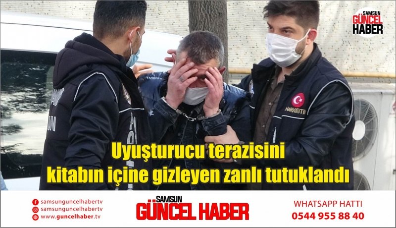 Samsun'da polisin uyuşturucu operasyonu düzenlediği evde uyuşturucuların yanı sıra kitap içine yerleşmiş uyuşturucu tartmada kullanılan hassas teraziyle ilgili gözaltına alınan şahıs mahkemece tutuklandı.