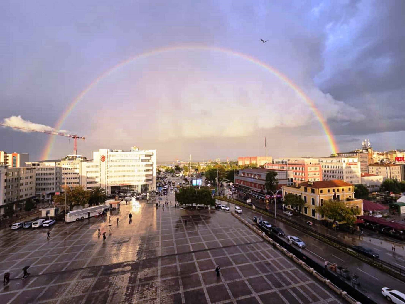 Yağışın ardından akşamüstü saatlerinde gökyüzünde ortaya çıkan gökkuşağı, Samsunlulara görsel bir şölen sundu. Renklerin tüm tonlarını barındıran gökkuşağı, Karadeniz ile birleşerek izleyenlere unutulmaz anlar yaşattı.