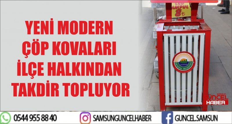 İlkadım Belediyesi Temizlik İşleri Müdürlüğü tarafından kentin ana arterlerindeki kaldırımlara sallama çöp kovası monte edilmeye başlanması ilçe halkından takdir topluyor. Daha temiz bir İlkadım için gece gündüz çalışan Temizlik İşleri Müdürlüğü, tüm mahalleleri sokak sokak dolaşarak çöplerin toplanmasının yanı sıra yeni yer üstü çöp konteyner ve şehrin takımı olan Samsunspor'un kırmızı-beyaz renkleriyle tüm cadde ve sokakları donatarak modern çöp kovalarını halkın hizmetine sunuyor.