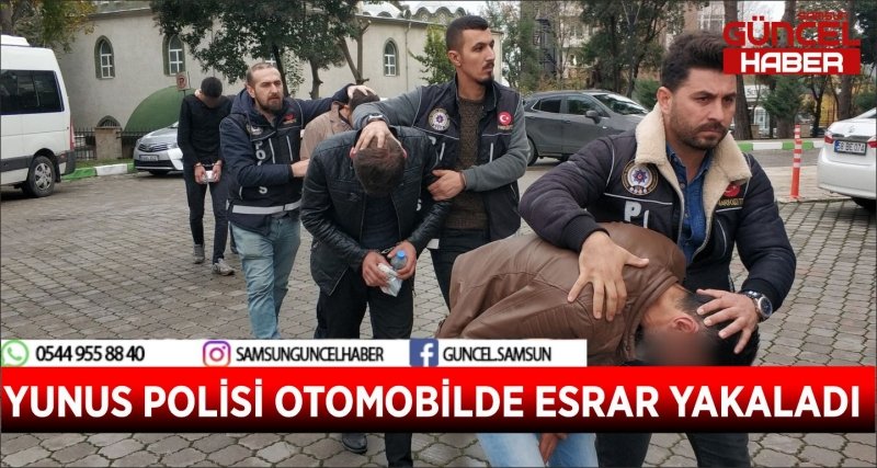 Edinilen bilgiye göre, Samsun Emniyet Müdürlüğü Asayiş Şube Müdürlüğüne bağlı motosikletli Yunus ekipleri, Canik ilçesinde şüpheli şahıslar ve araçlar üzerinde uygulama yaparken bir otomobilde 471,55 gr esrar maddesi ele geçirdi. Araçta bulunan 3 kişi gözaltına alınarak Samsun Emniyet Müdürlüğü Narkotik Suçlarla Mücadele Şube Müdürlüğü ekiplerine teslim edildi. Narkotik Suçlarla Mücadele Şube Müdürlüğü ekipleri, soruşturmayı genişleterek yaptıkları çalışmalarda olayla ilgili bir kişiyi daha gözaltına aldı. Narkotik Suçlarla Mücadele Şube Müdürlüğündeki sorguları tamamlanan M.K., E.K., G.Ö. ve H.K., "uyuşturucu ticareti" suçundan bugün Samsun Adliyesine sevk edildi.