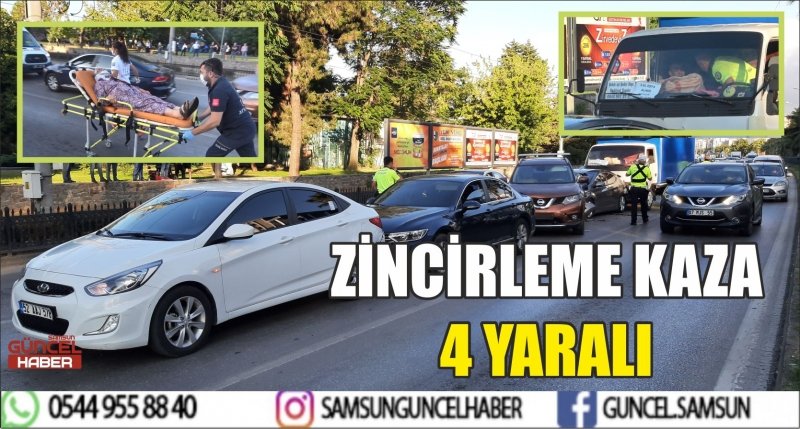 Samsun’da bir kamyonun kırmızı ışıkta bekleyen otomobile arkadan çarpması ile meydana gelen zincirleme trafik kazasında 4 kişi yaralandı.